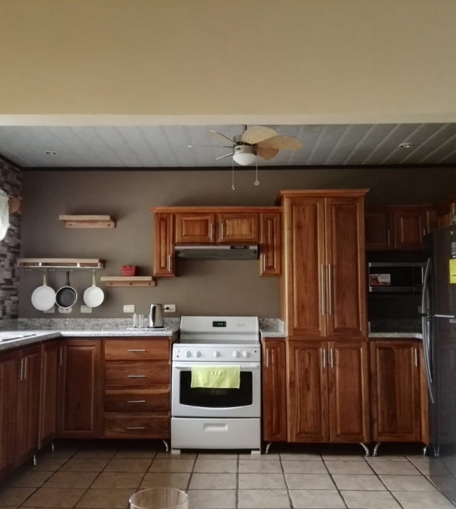 Cocina: Amplia y muy confortable, con muebles de madera de pino. Cuenta con prevista de tomas eléctricos, Teléfonos y TV.